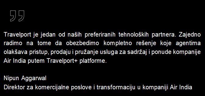 Prošle godine, Travelport i Air India su proširili svoje višegodišnje partnerstvo kako bi uključili NDC sadržaj i usluge. Danas smo ponosni da zajednički objavimo da smo ispred planova i da se spremamo za lansiranje NDC sadržaja u četvrtom kvartalu 2024. godine.